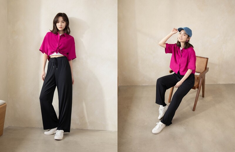 俐落剪裁自带简约时尚感,轻鬆舒适的穿脱设计,加上黄金比例可修饰身型拉长腿部线条,也让身高偏娇小的王净一穿就爱不释手,打算直接包色全收,罗纹款的百搭特性,而且平常清洗整理收纳也很简单,与其他有压摺设计单品相比更不容易发皱,春夏季节我喜欢的各种穿搭风格都可以融入其中,当然要全部包色入手。」